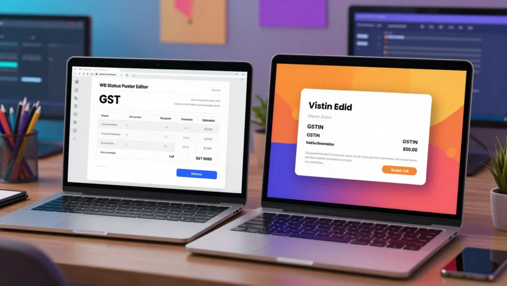 WB Status рдХреЗ Poster Editor рдореЗрдВ рдЬрд╛рдПрдВ, рдПрдХ invoice рдпрд╛ business template рдЪреБрдиреЗрдВ, рдЕрдкрдирд╛ business name, GSTIN, address, рдФрд░ tax details add рдХрд░реЗрдВ тАФ рдФрд░ рдПрдХ professional GST invoice рдпрд╛ promotional poster рддреИрдпрд╛рд░ред рдмрд┐рдирд╛ рдХрд┐рд╕реА design skill рдХреЗ!
